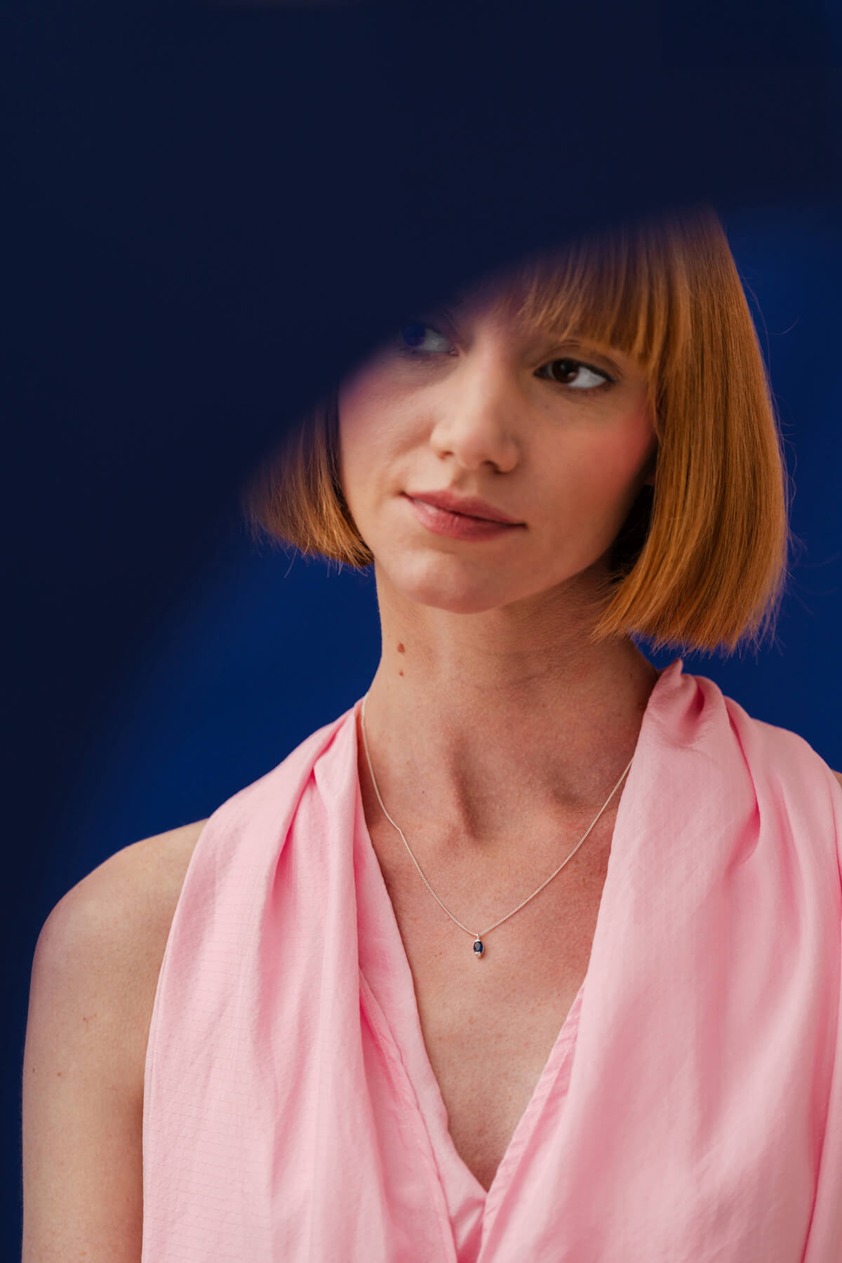 The Anchor necklace features a refined oval cubic zirconia set in a smooth, minimal pendant, allowing the stone to take focus. The adjustable chain lets you wear it at 40 or 45 cm, making it easy to style with different necklines or layer with other favourites. Available with deep blue or soft pink cubic zirconia in sterling silver or gold-plated sterling silver.