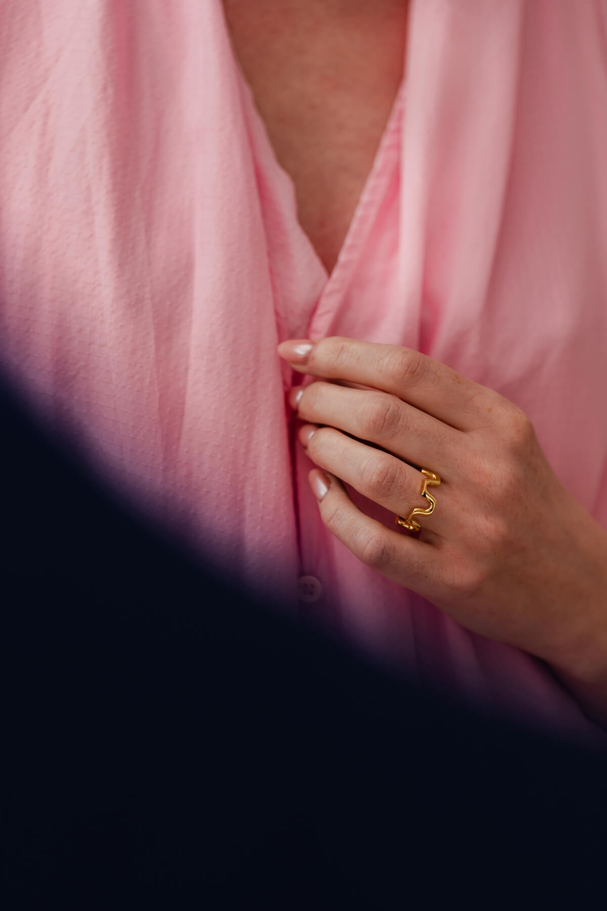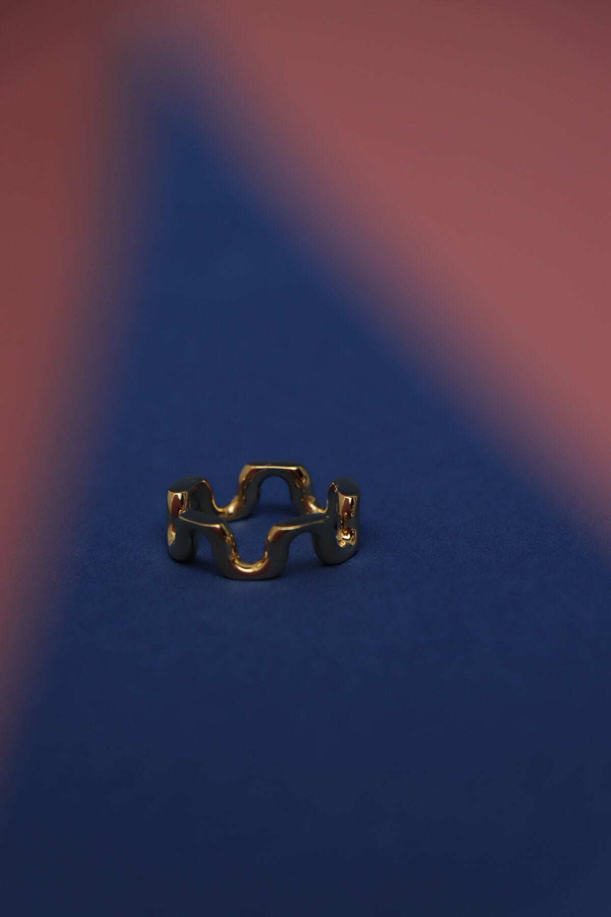 Defined by continuous curves, the Orbit ring features a flowing, sculptural shape that wraps smoothly around your finger. The open, rounded form feels fluid and expressive, creating a subtle statement that stands out without feeling heavy. We pair it with more geometrically shaped rings, such as the Facet ring.