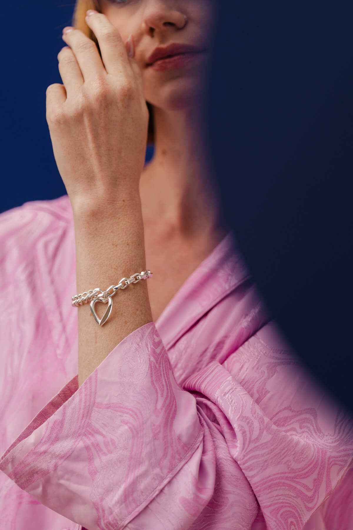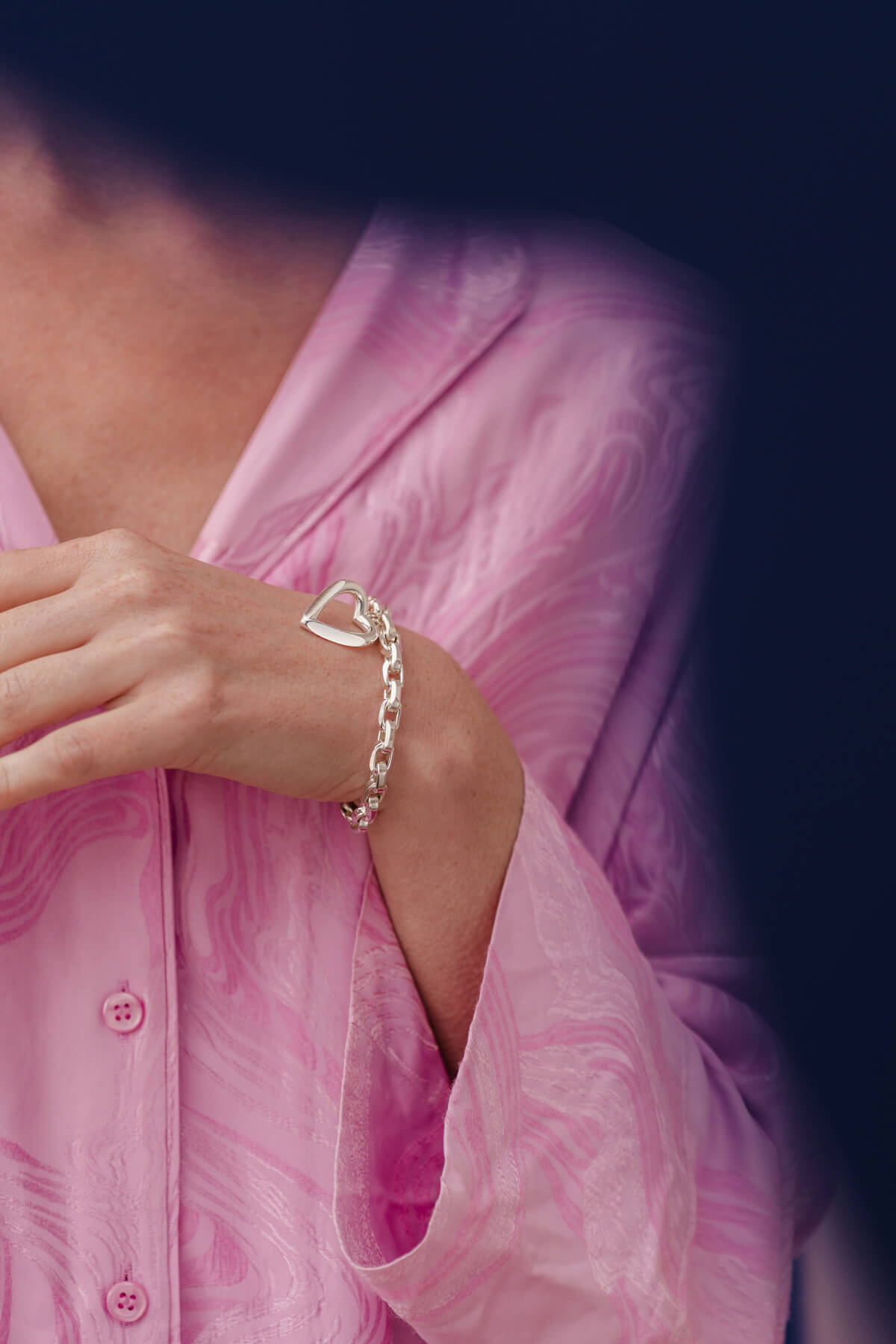 With the Pulse bracelet, you wear your heart on your sleeve. It features a classic curb chain finished with an open heart shaped charm that moves gently with you. The contrast between the solid chain and the fluid outline creates a subtle statement with a warm, personal feel. Available in sterling silver or gold-plated sterling silver.